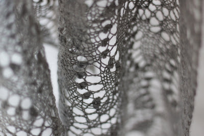 Alku oli hieman takkuava, sillä vaikka tarkistin aloitussilmukkamäärän neljästi, ei se täsmännytkään. Sitten säädin hieman ja jatkoin ja kohta se ei taas täsmännyt. Sitten alkoikin kaaviosta neulominen. Ja se jatkui seuraavalla sivulla ja sitä seuraavalla jne. En lähtisi teevee-neuleeksi tätä suosittelemaan, sillä koko työ on yhtä kaaviota, muistaakseni yhteensä 140 kerrosta! Onhan tuossa nyt hieman toistoakin ja ei se kaavio mikään ihan mahdoton ollut, mutta kyllä tässä työtä on. Ihan heti en lähde tätä neulomaan uudelleen. Pingottamisesta en edes mainitse mitään. Damaskin piti valmistua äitienpäivälahjaksi anopille, mutta aikataulutus ei ihan osunut ja tämä jäi pahasti kesken. Mutta nyt se on valmis ja onhan se kaunis!